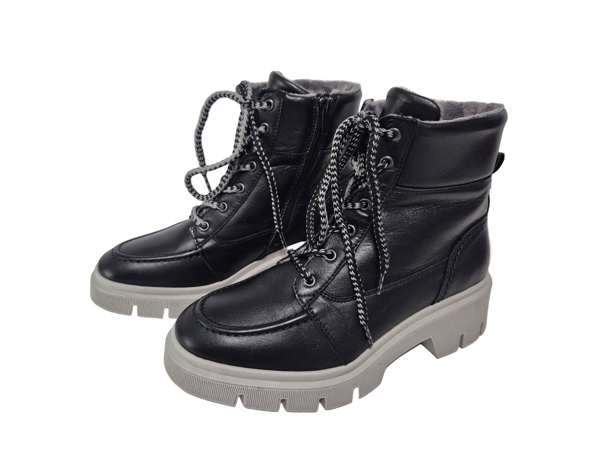Schnürstiefelette Aus Rind-Nappaleder. Mit warmem Textilfutter und Innensohle aus Textil. Mit praktischem Wechselfußbett. Schaft-H. ca. 18 cm. Absatzhöhe ca. 50 mm.