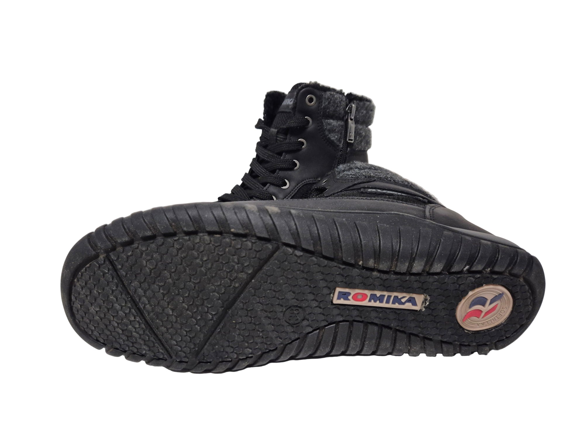 - Obermaterial aus wasserabweisendem Textil und Lederimitat, mit ROMITEX-Ausstattung